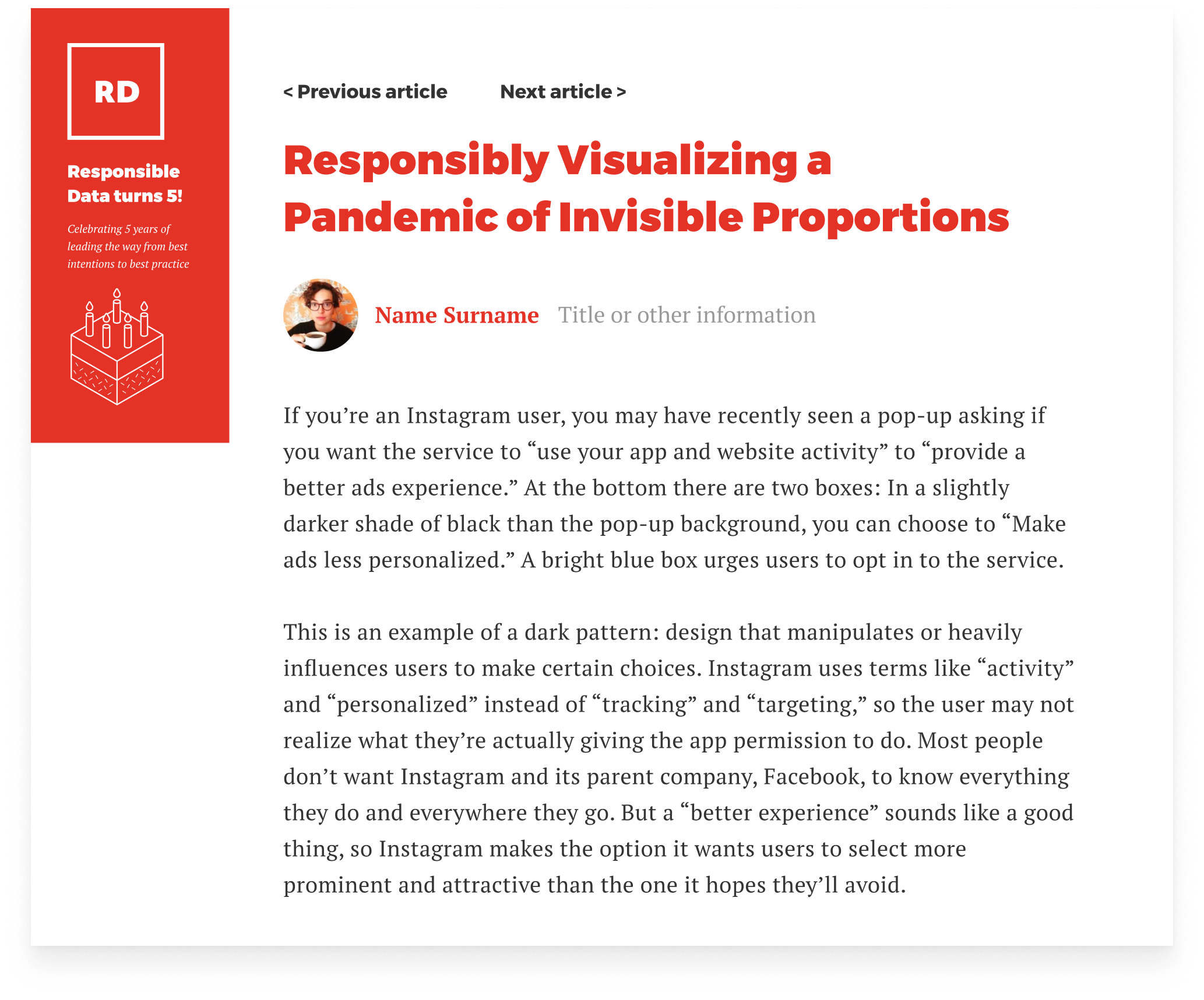 The Responsible Data (RD) community is a place for those who use data in social change and advocacy to develop practical approaches to addressing the ethical, legal, social and privacy-related challenges they face. We identify the unintended consequences of using data in this kind of work, and bring people together to create solutions.