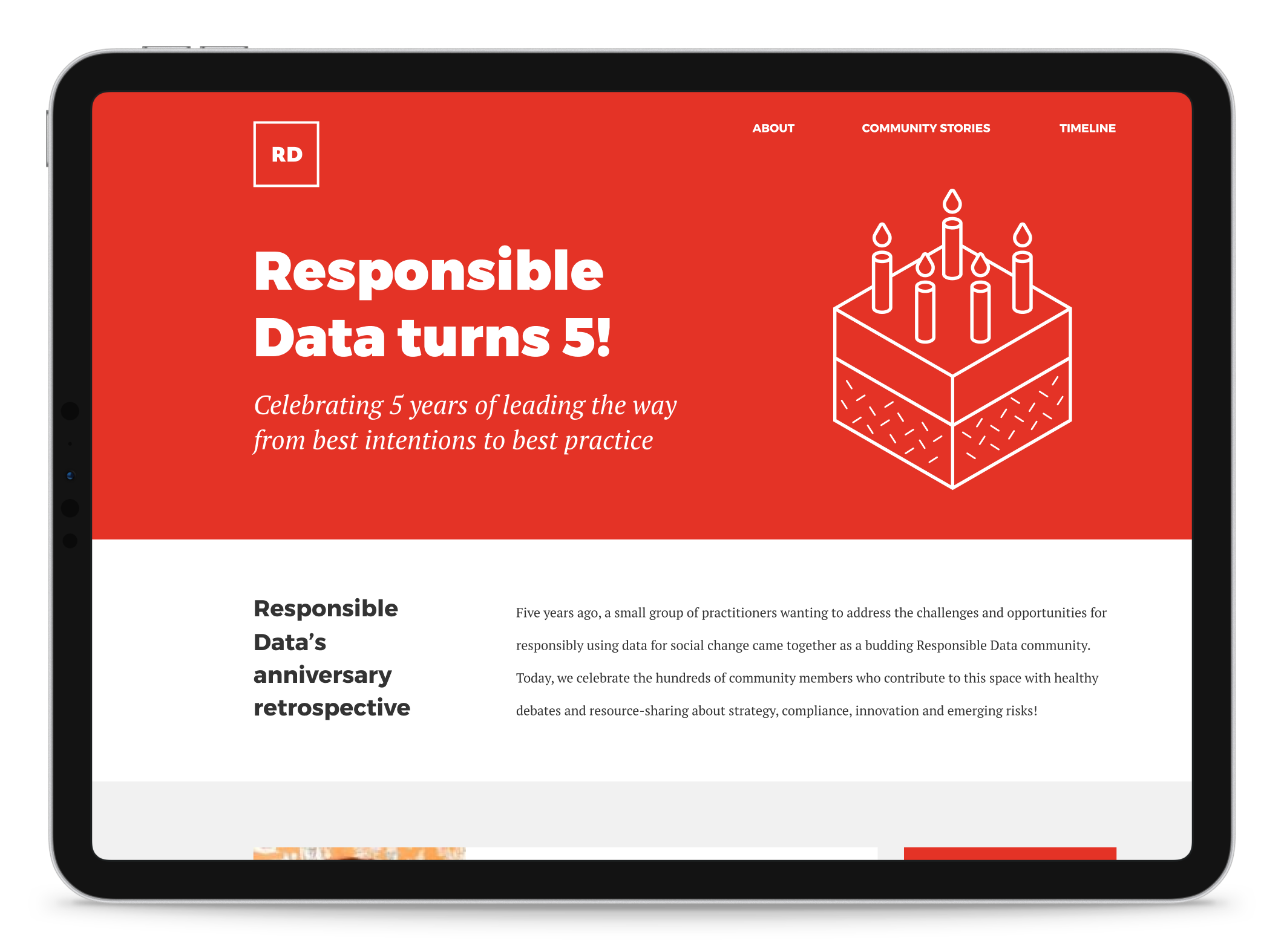 This micro-site was created to celebrate the fifth anniversary of the RD community, and to highlight the work the community has done. I was tasked with the initial concept mock-ups and final visual design.