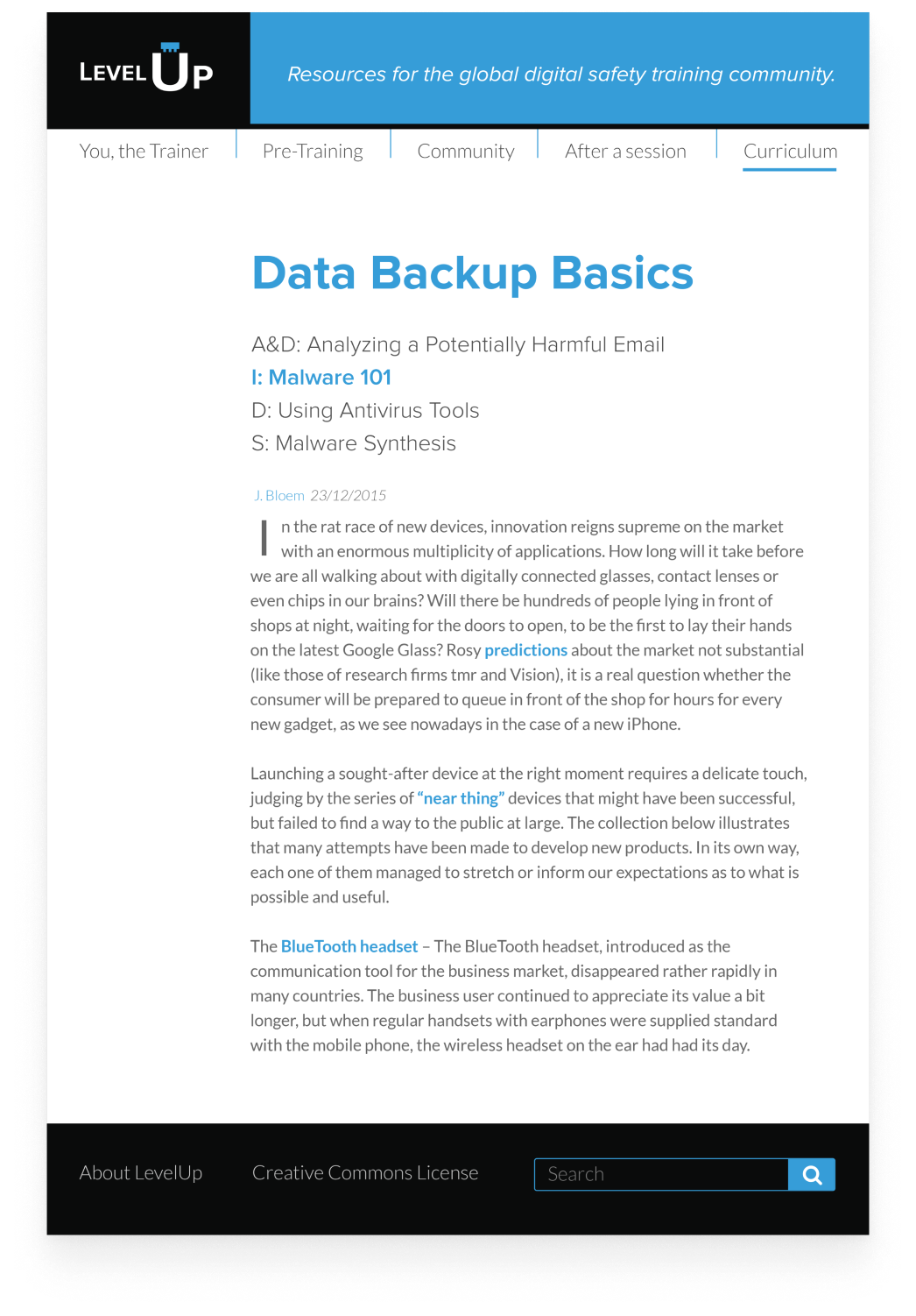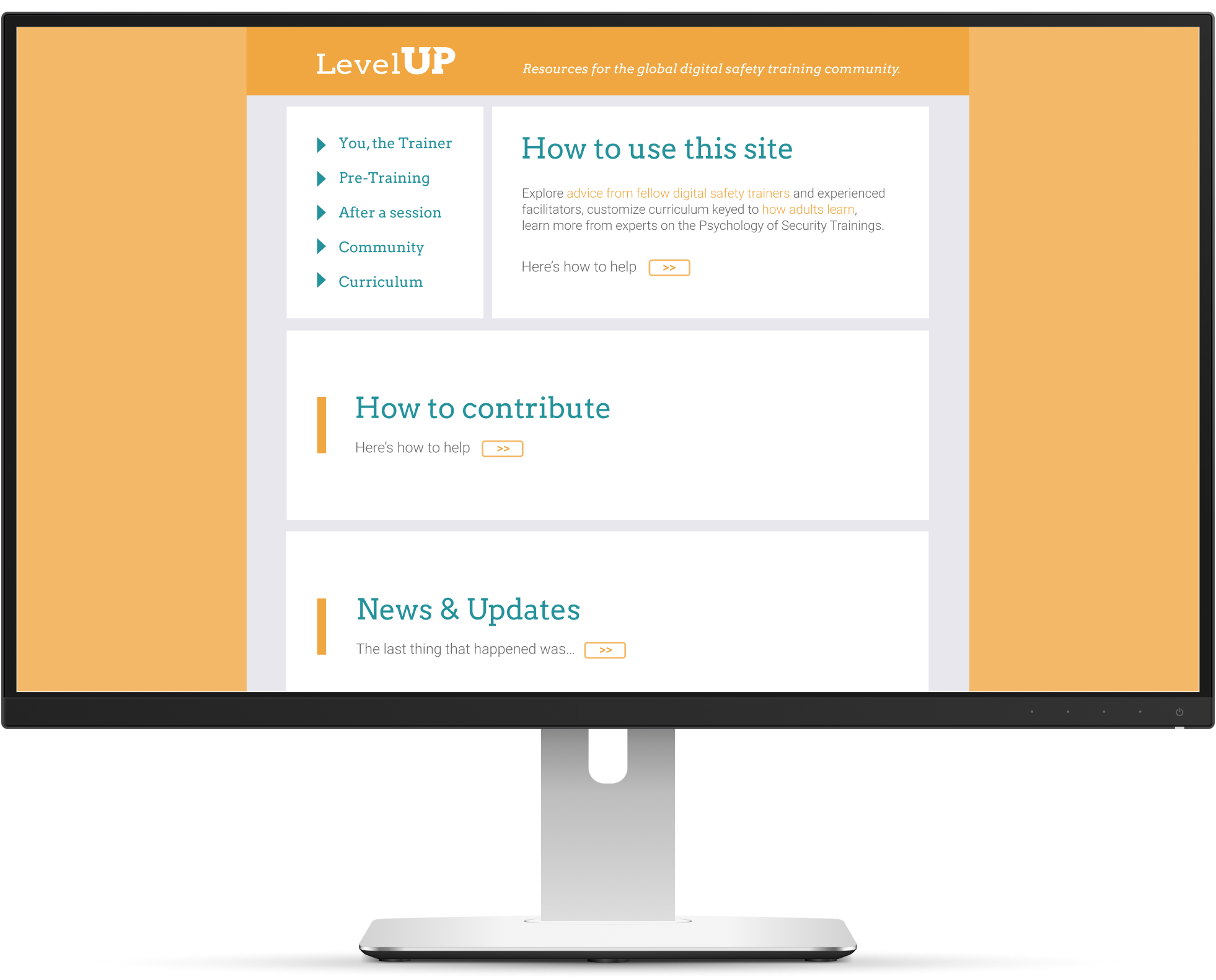 LevelUp is, at its core, an educational resource that features advice from digital safety trainers from around the world. Its purpose is to help digital safety trainers and educators improve their work and better protect social change agents. I was part of the website redesign initiative, creating the new brand identity and UI design.